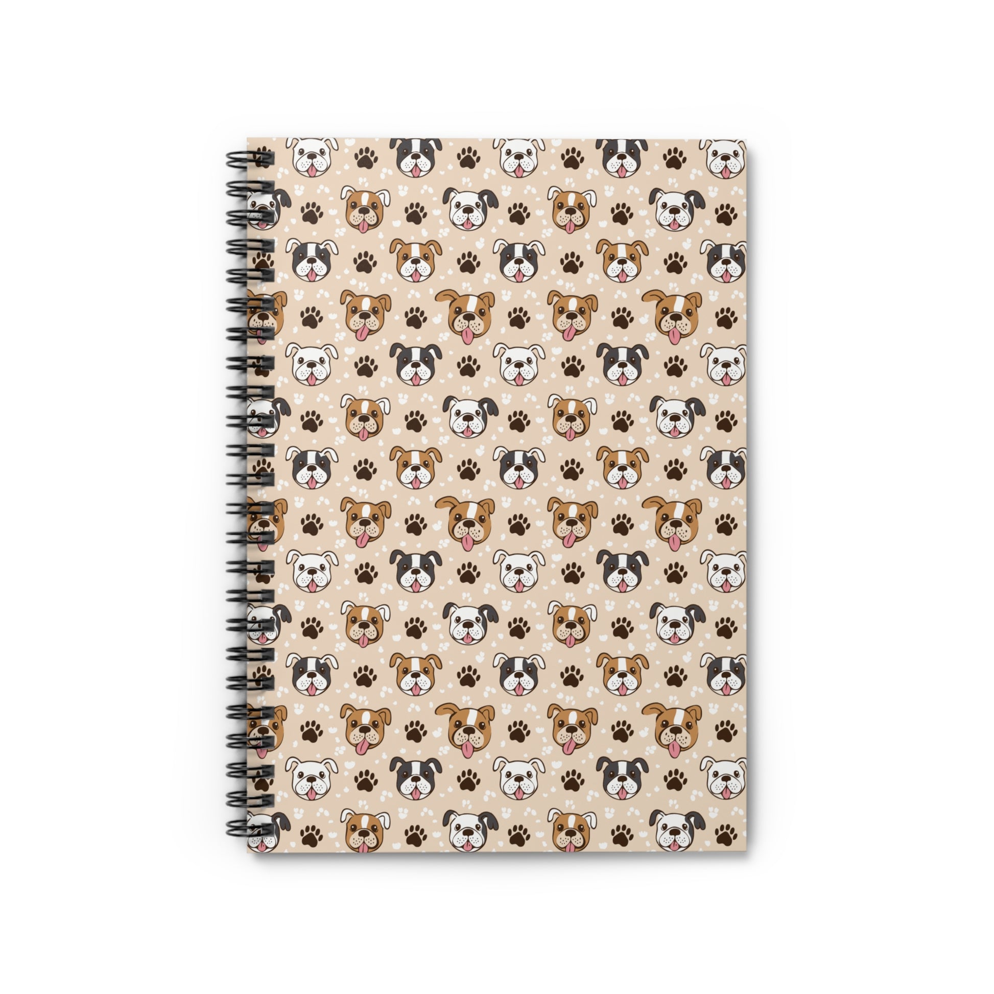 English Bulldog Face and Paw Print Spiral Notebook - Ruled Line, Journal, Notebook, Bulldog Lover Gift, Dog Lover Stationery, Back to School
