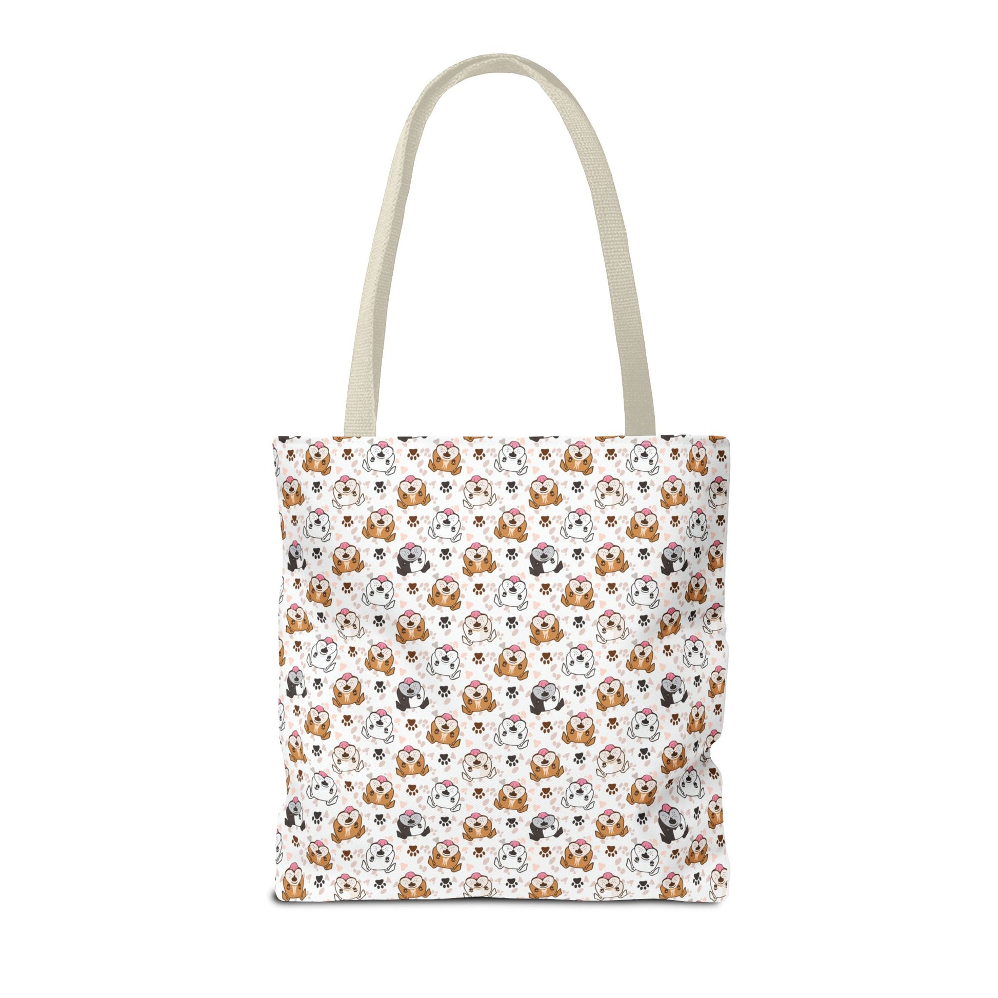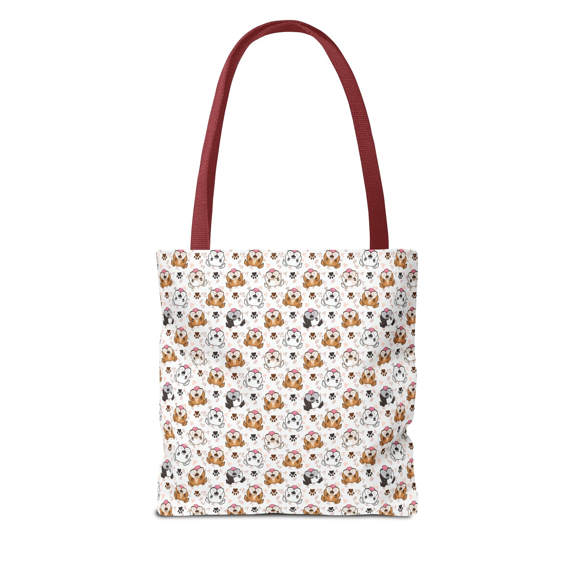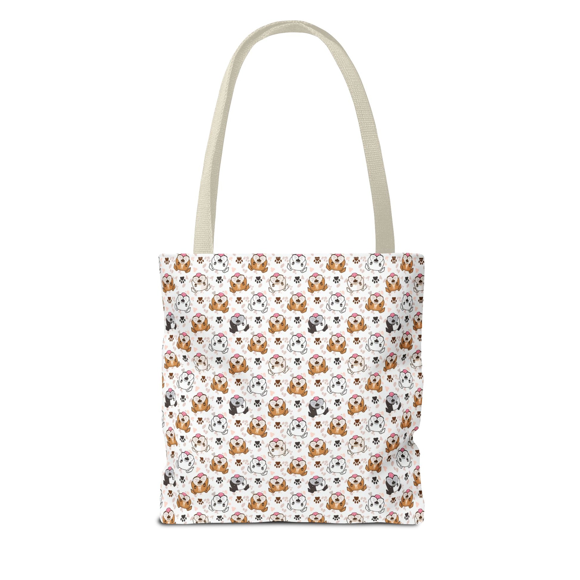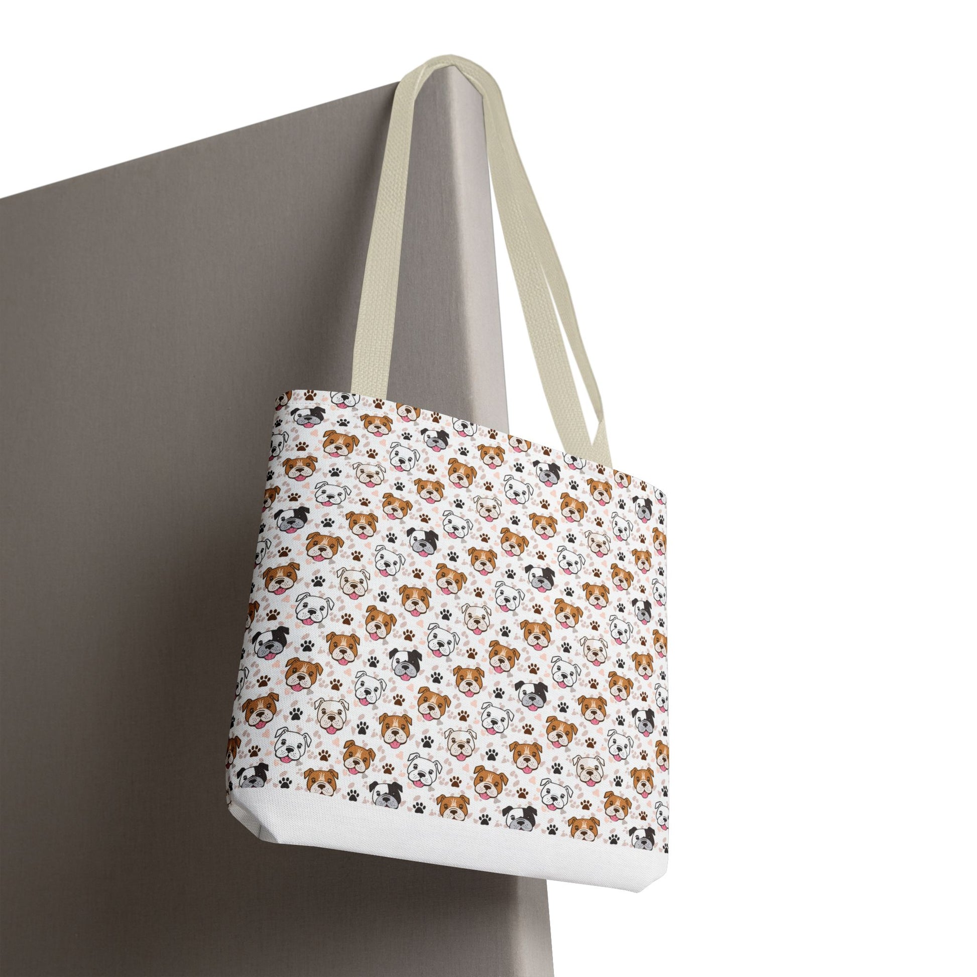 English Bulldog Tote Bag, Bulldog Lover Gift, Paw Print Design, Pet Owner Gift, Shopping Bag, Bulldog Mom/Dad Gift