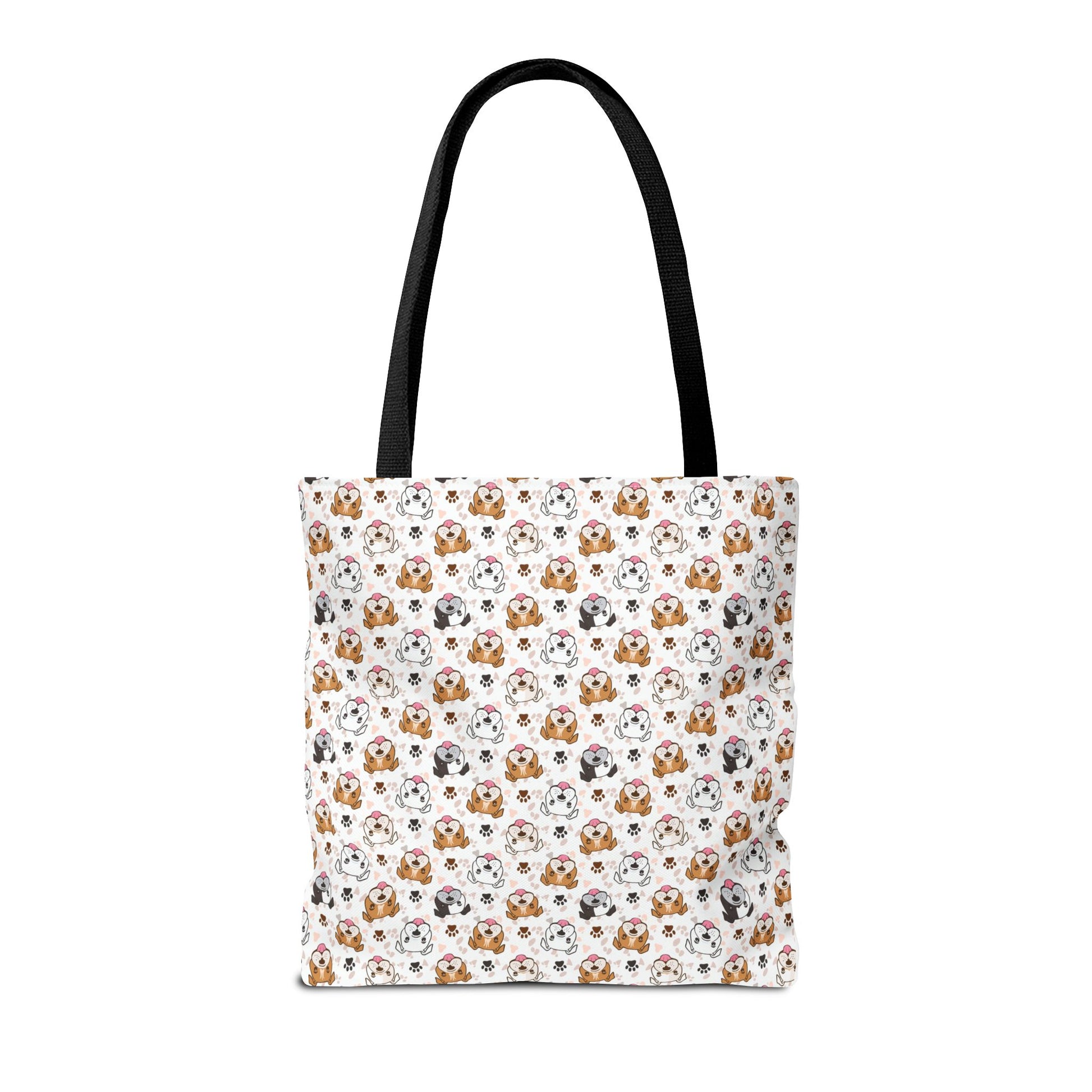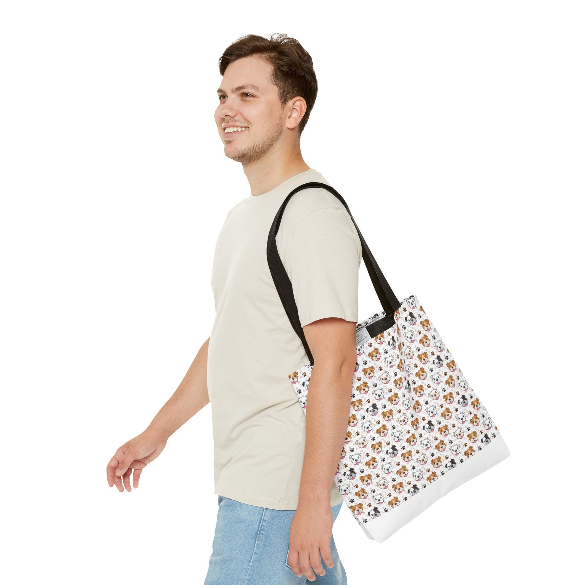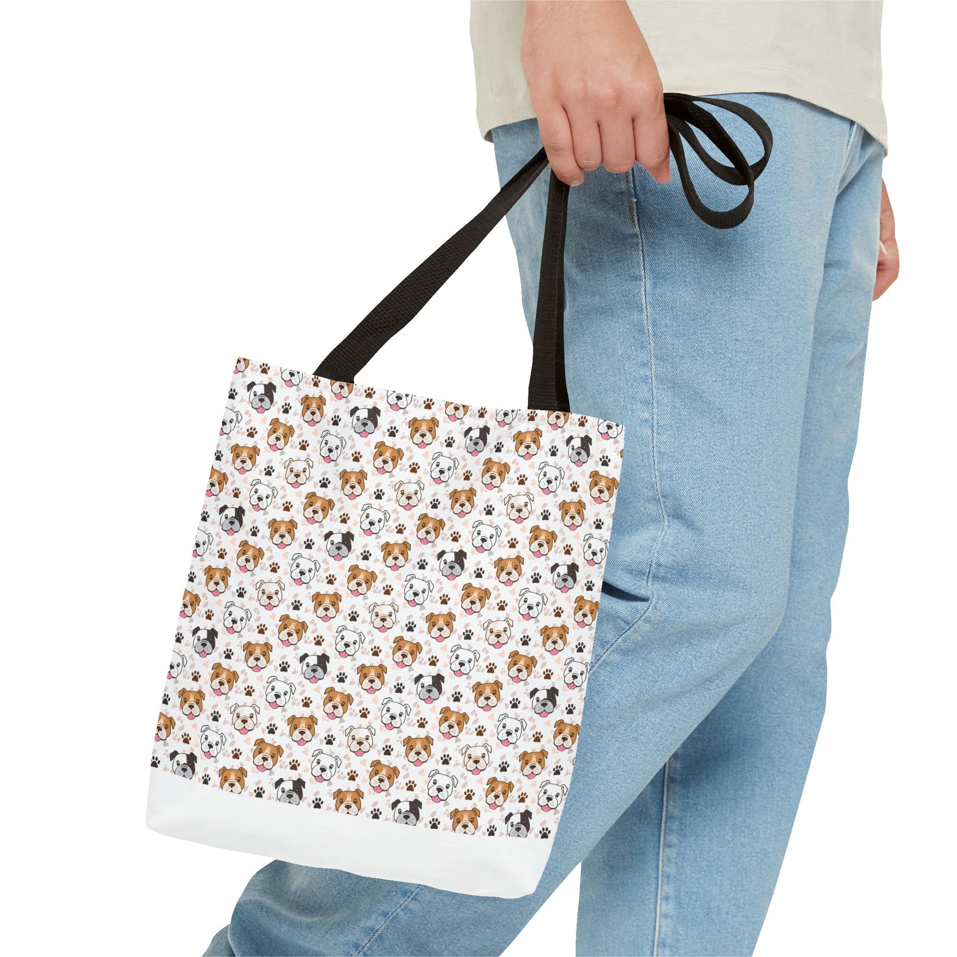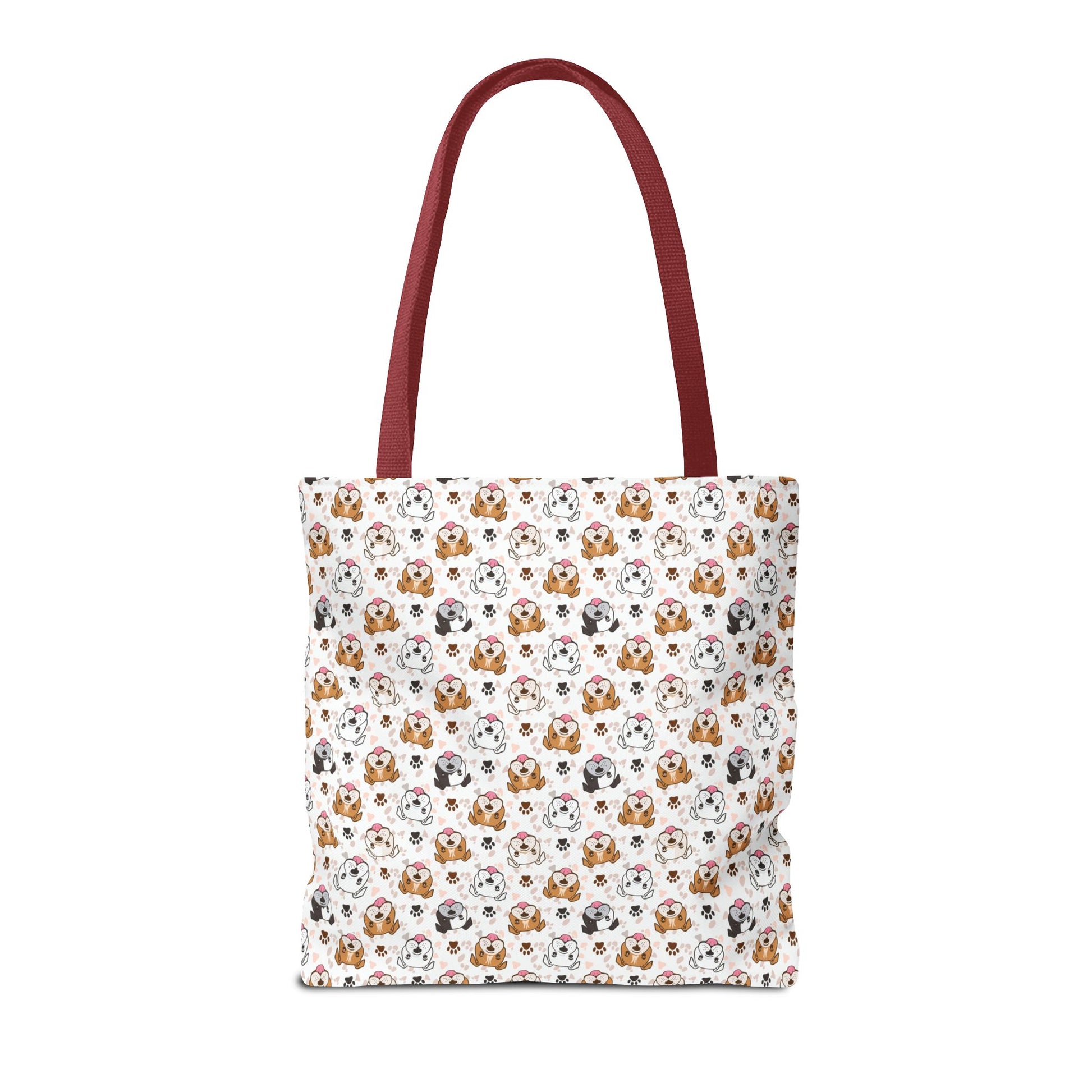 English Bulldog Tote Bag, Bulldog Lover Gift, Paw Print Design, Pet Owner Gift, Shopping Bag, Bulldog Mom/Dad Gift