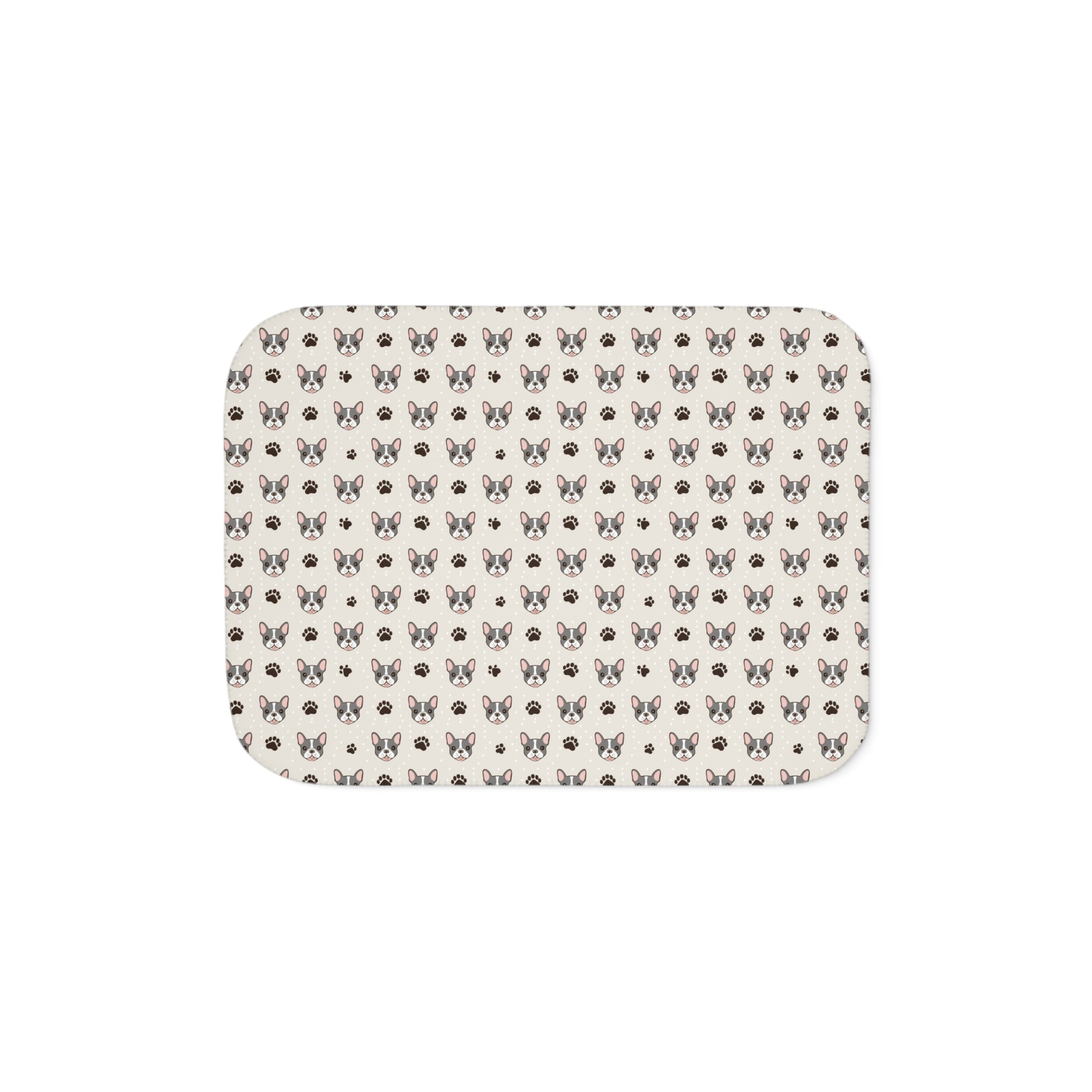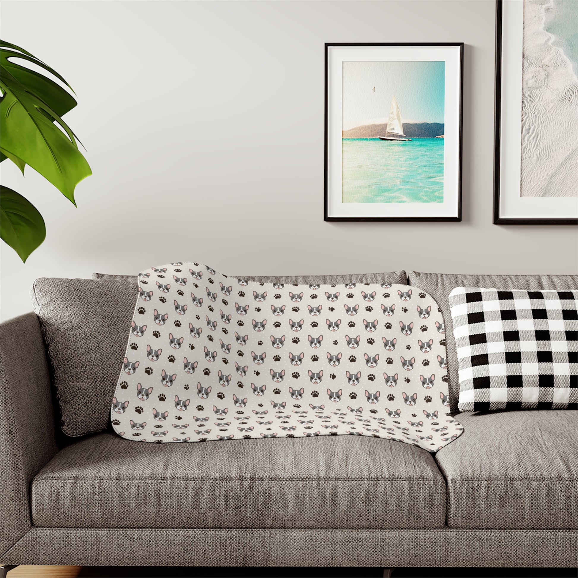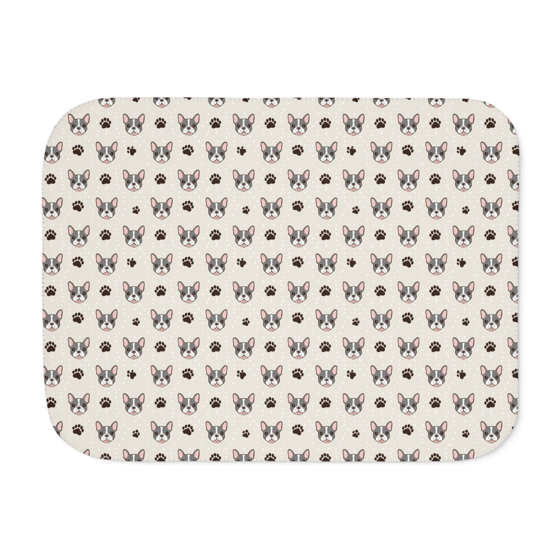 Sherpa Blanket, French Bulldog Design - Cozy Two-Tone Throw with Cute Paw Prints, Frenchie Lover Gift, Soft Plush Bedding, Animal Print