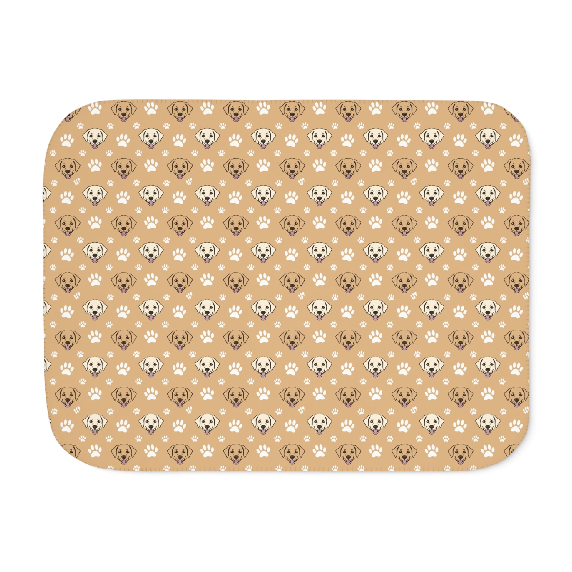 A cozy and soft Sherpa Blanket featuring a happy lab and paw print design, perfect for animal lovers and pet owners. This blanket adds a touch of warmth and joy to any home, making it ideal for snuggling up on holidays, lazy Sundays, or movie nights.